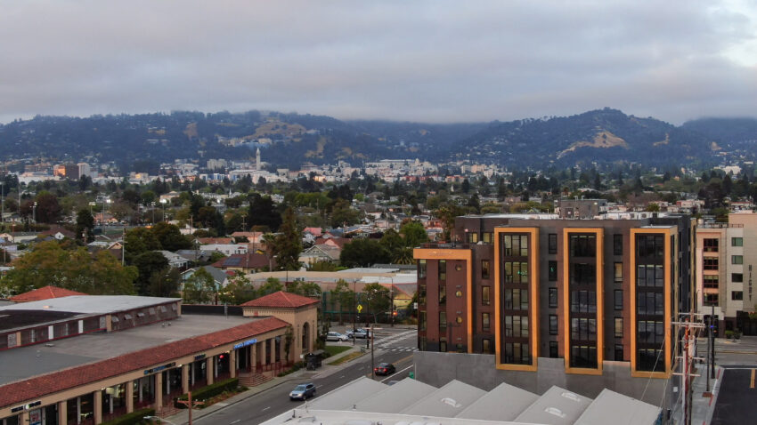 The project provides 78 dwellings with parking for 43 cars and 38 bicycles and one commercial space at street level. Twenty percent of the units are “below market rate” affordable. Two rooftop gardens help to break down the six-story mass of the building.